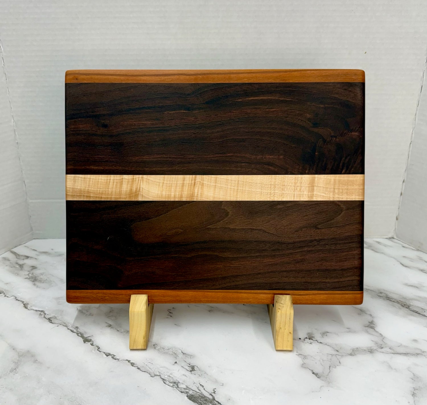 We carefully select the finest cherry, maple, walnut, and oak to ensure every board is unique, durable, and food safe. Each item is handcrafted, sanded to perfection, and finished with mineral oil and board butter to highlight the wood’s natural beauty. We stand behind every piece and promise your satisfaction, creating artisan boards meant to be treasured for generations.
